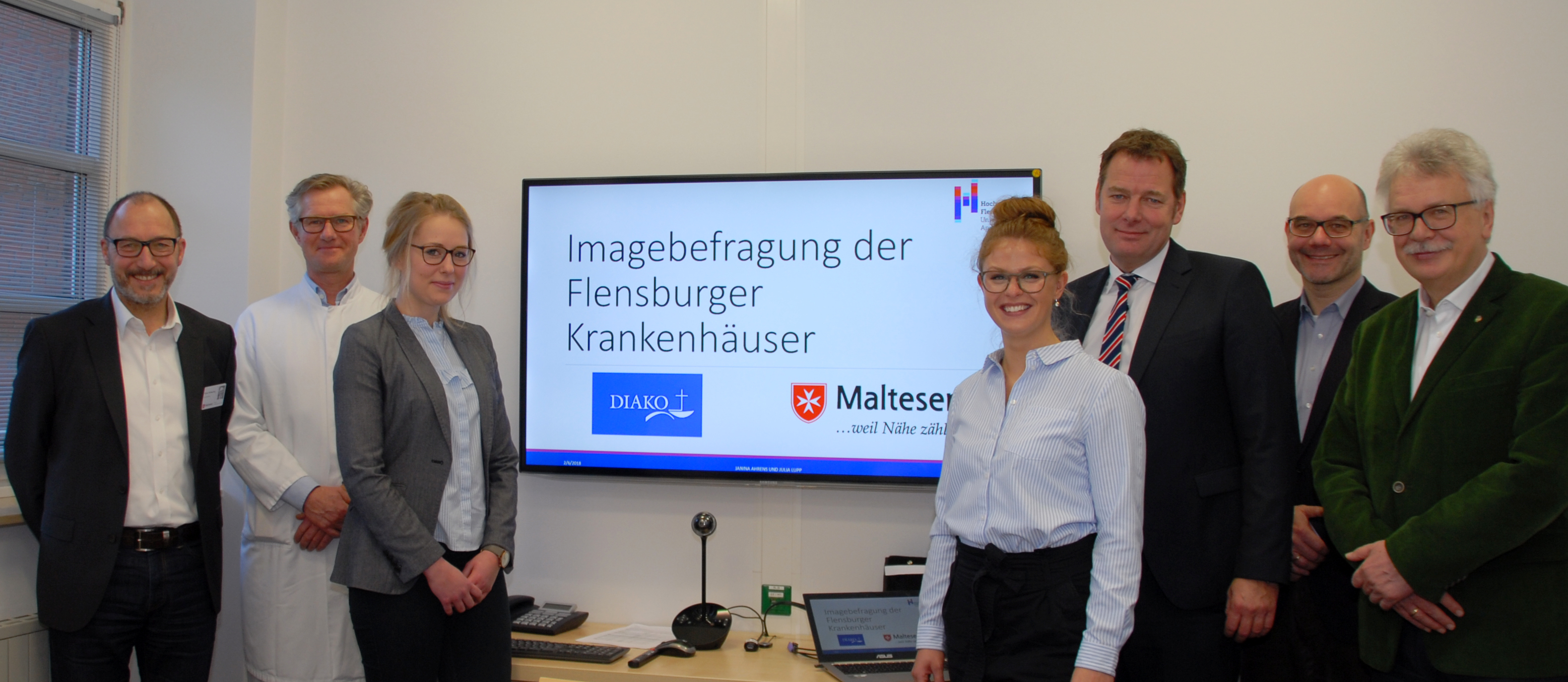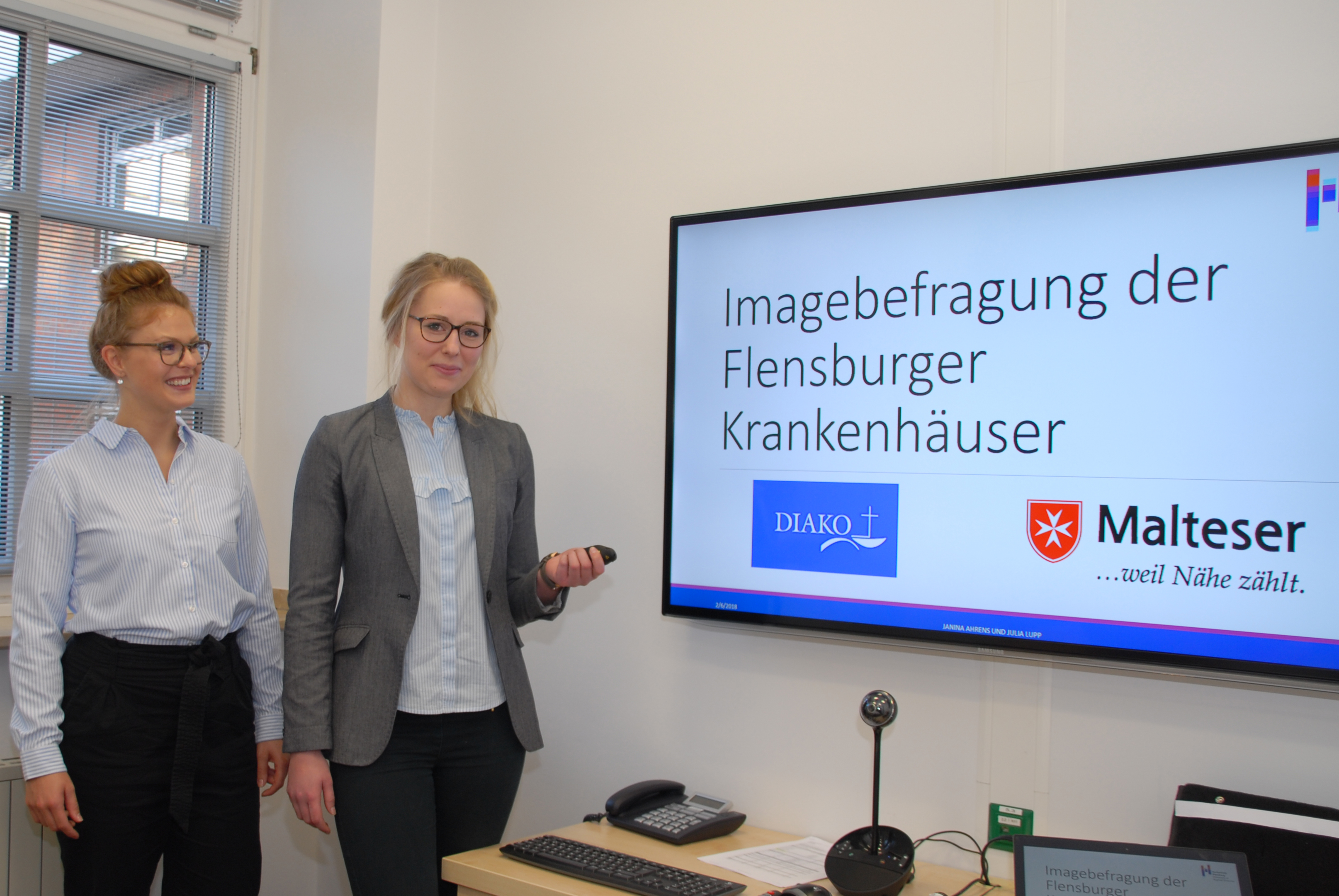 Mit dieser Frage beschäftigten sich die Studierenden des Schwerpunkts Krankenhausmanagement an der Hochschule Flensburg im Laufe des Wintersemesters. Bereits zum vierten Male wurden hierzu Flensburger Bürger befragt. Diese Umfrage wurde von zwei Studentinnen, Janina Ahrens und Julia Lupp, ausgewertet und den Geschäftsführungen beider Häuser präsentiert. Beide Krankenhäuser erreichten gute Imagewerte und Bewertungen. Gegenüber der letzten Befragung hatte sich wenig verändert. Die Geschäftsführer begrüßten die Ergebnisse als wichtige Fingerzeige für interne Diskussionen. Die Befragung ist nicht nur ein Ausdruck der praxisnahen Ausbildung an der Hochschule, sondern auch einer starken Verbundenheit der Hochschule mit den Krankenhäusern. Das Projekt wurde von Prof. Dr. Roland Trill geleitet.